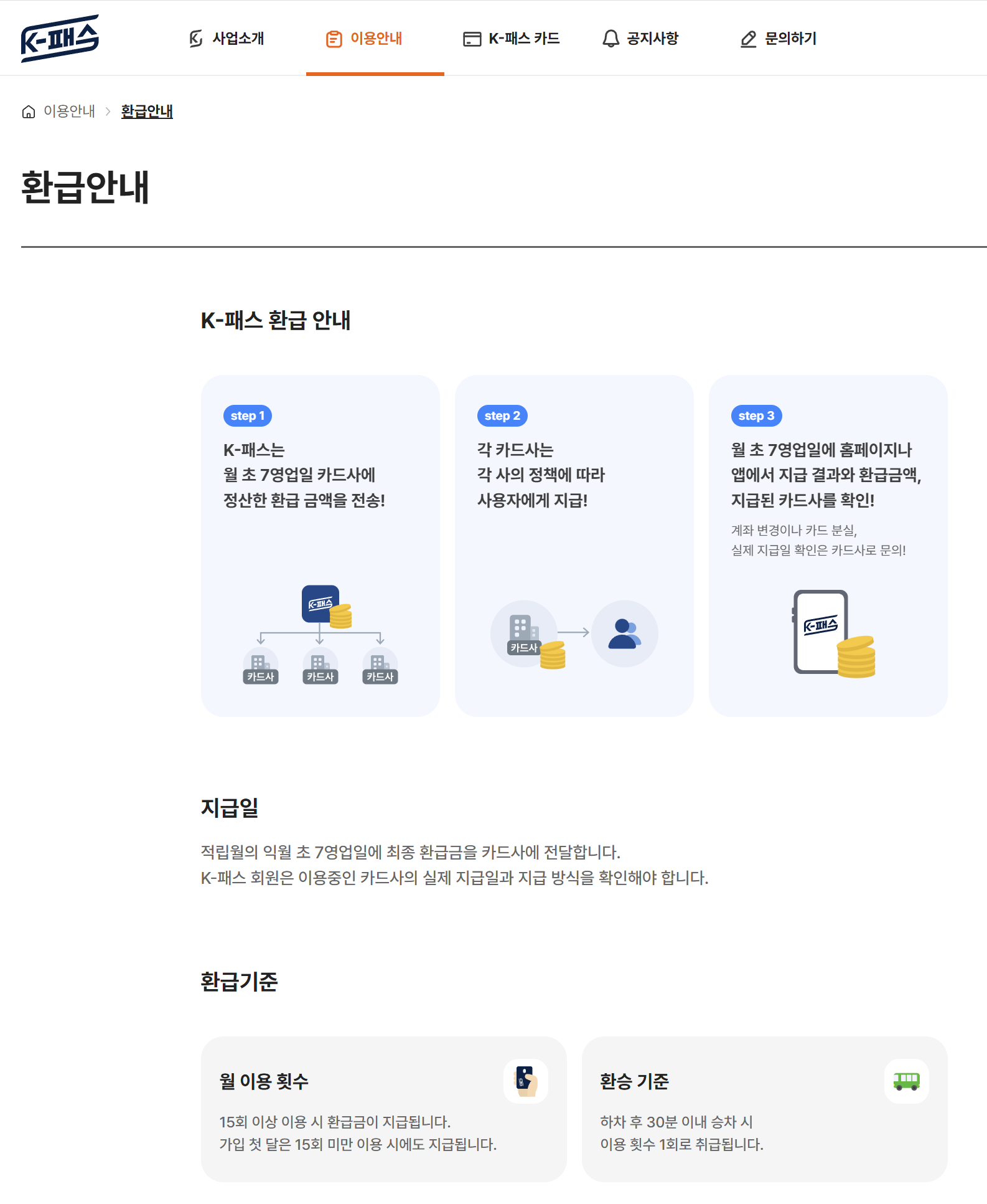 ▲ K패스 환급 안내 · 출처: K패스 공식 홈페이지 (korea-pass.kr)