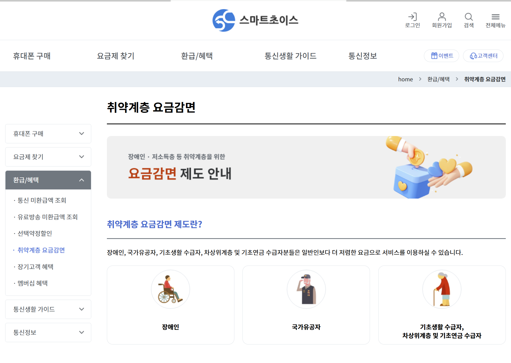 ▲ 취약계층 요금감면 제도 안내 · 출처: 스마트초이스 (www.smartchoice.or.kr)