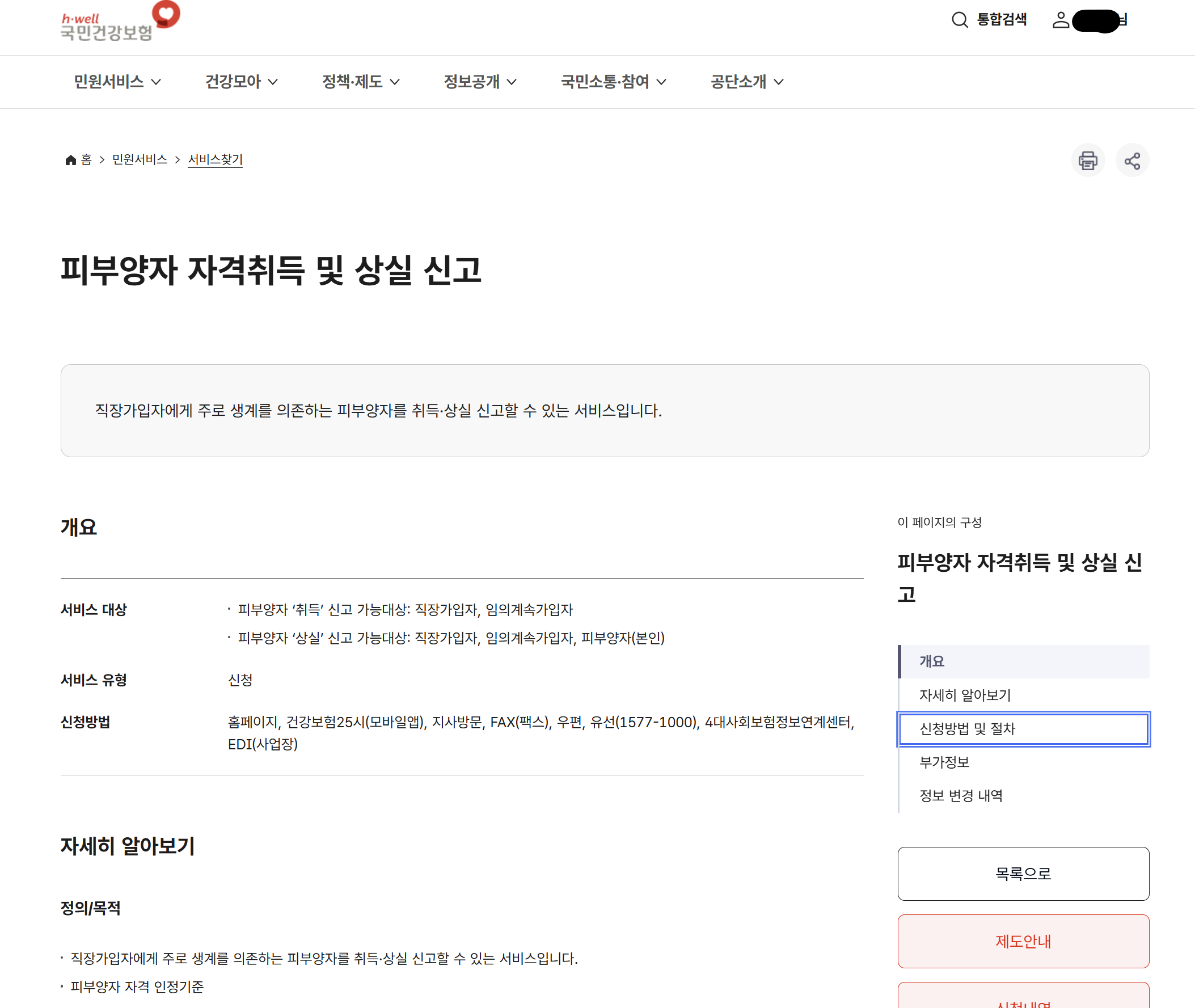 ▲ 국민건강보험공단 피부양자 자격 확인 화면 · 출처: 국민건강보험공단 (nhis.or.kr)