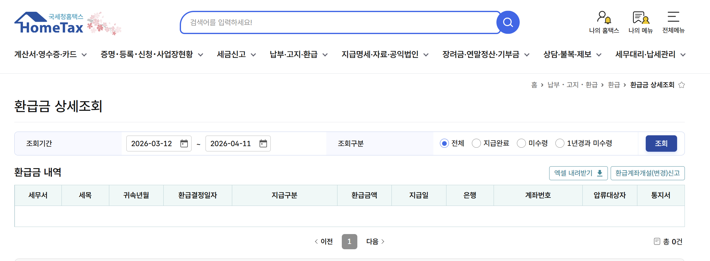 홈택스에서 납부·고지·환급 → 환급금 상세조회 메뉴에서 처리 상태를 확인할 수 있어요.